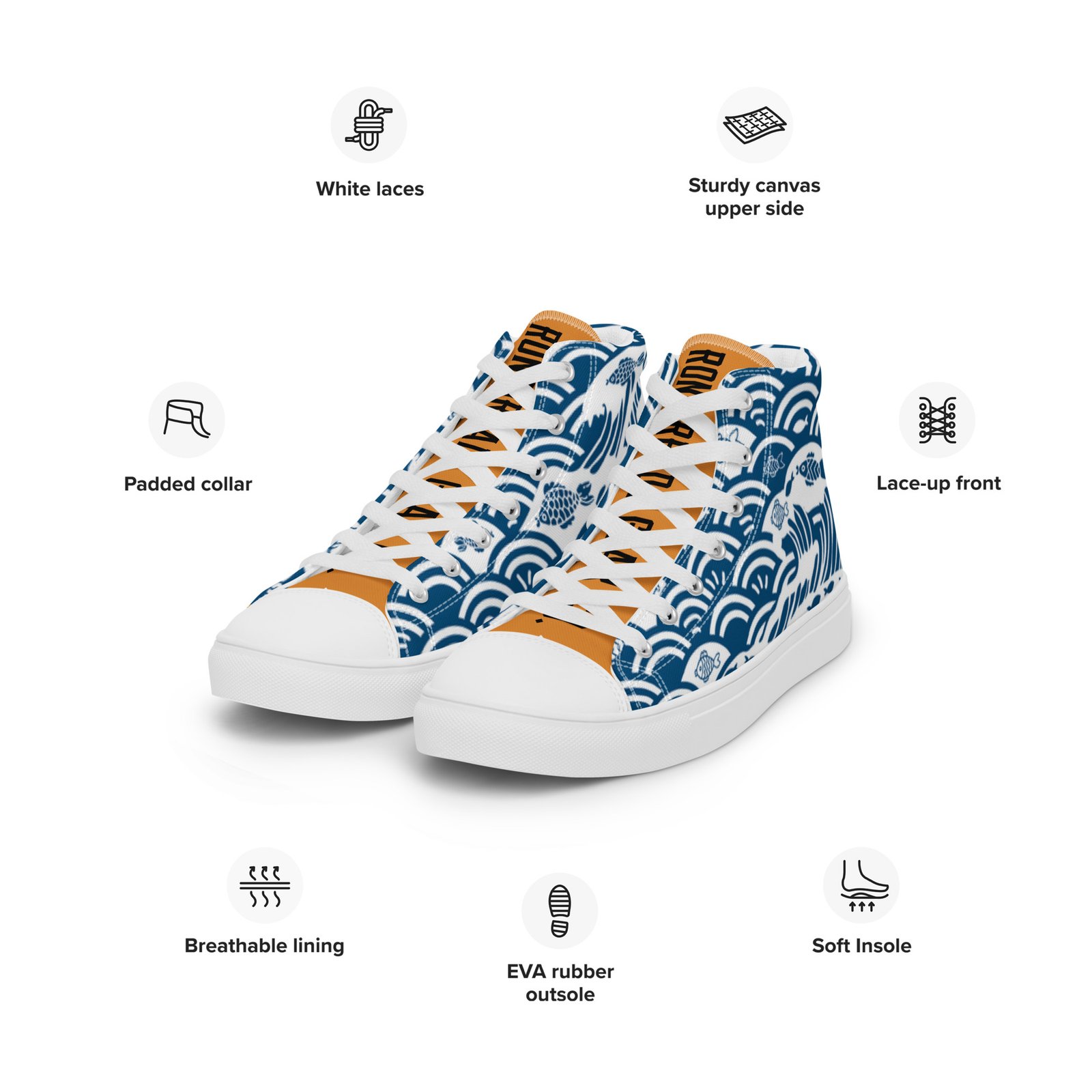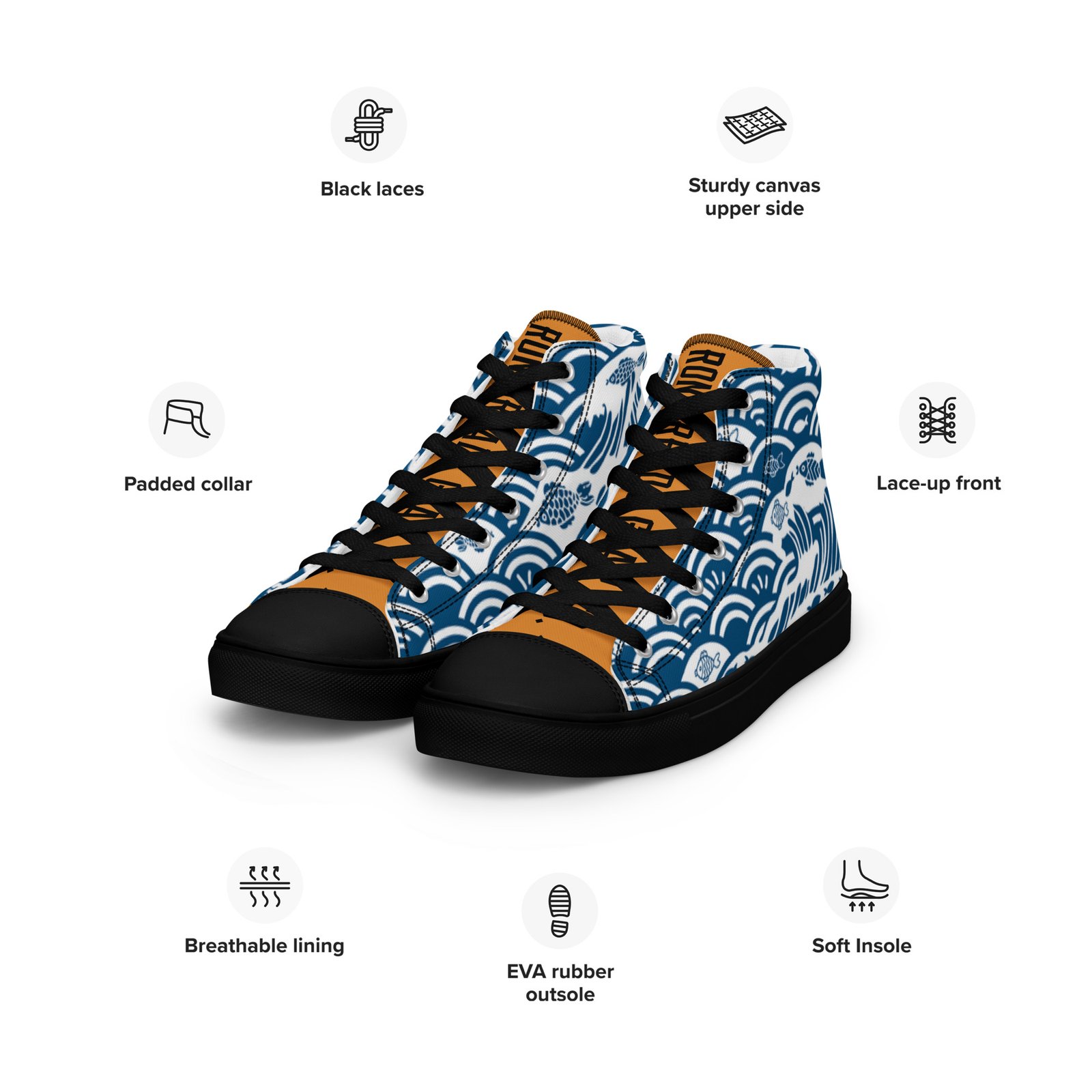 Rhythmic, Technical, and Fluid. Step into the extraordinary with our Kairo Edition Canvas High Tops, part of the RONINREADY Kairo Collection, a tribute to the “Ocean Routes” of the Pacific, featuring the rhythmic flow of the Ocean-blue Seigaiha wave. These sneakers blend high-energy aesthetics with everyday durability. Whether you’re hitting the city streets or embarking on that great adventure, these high tops deliver a lightweight feel without sacrificing your edge.